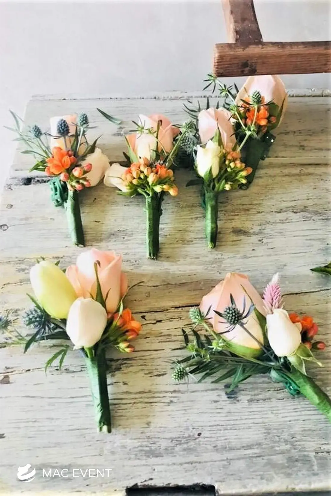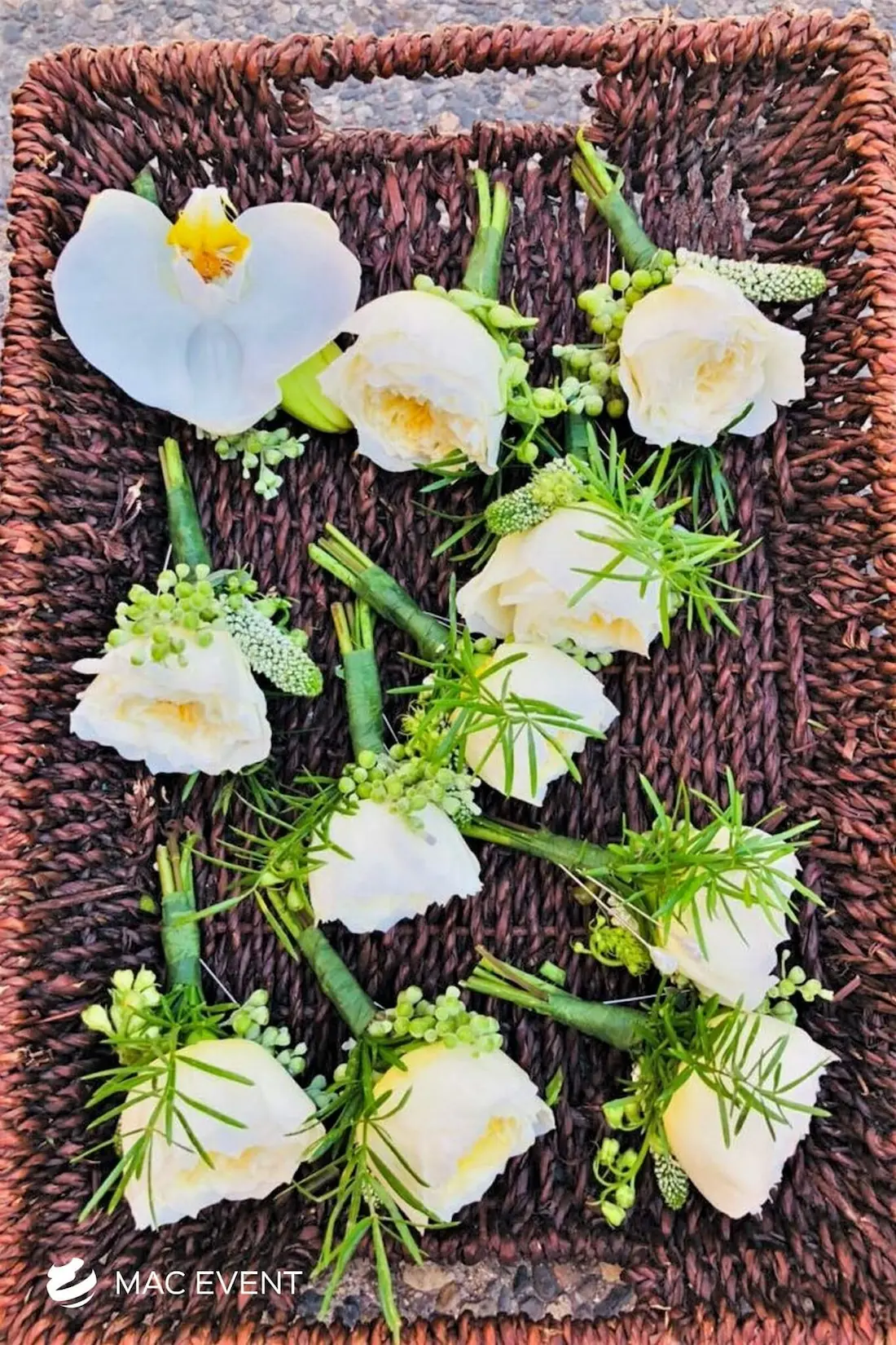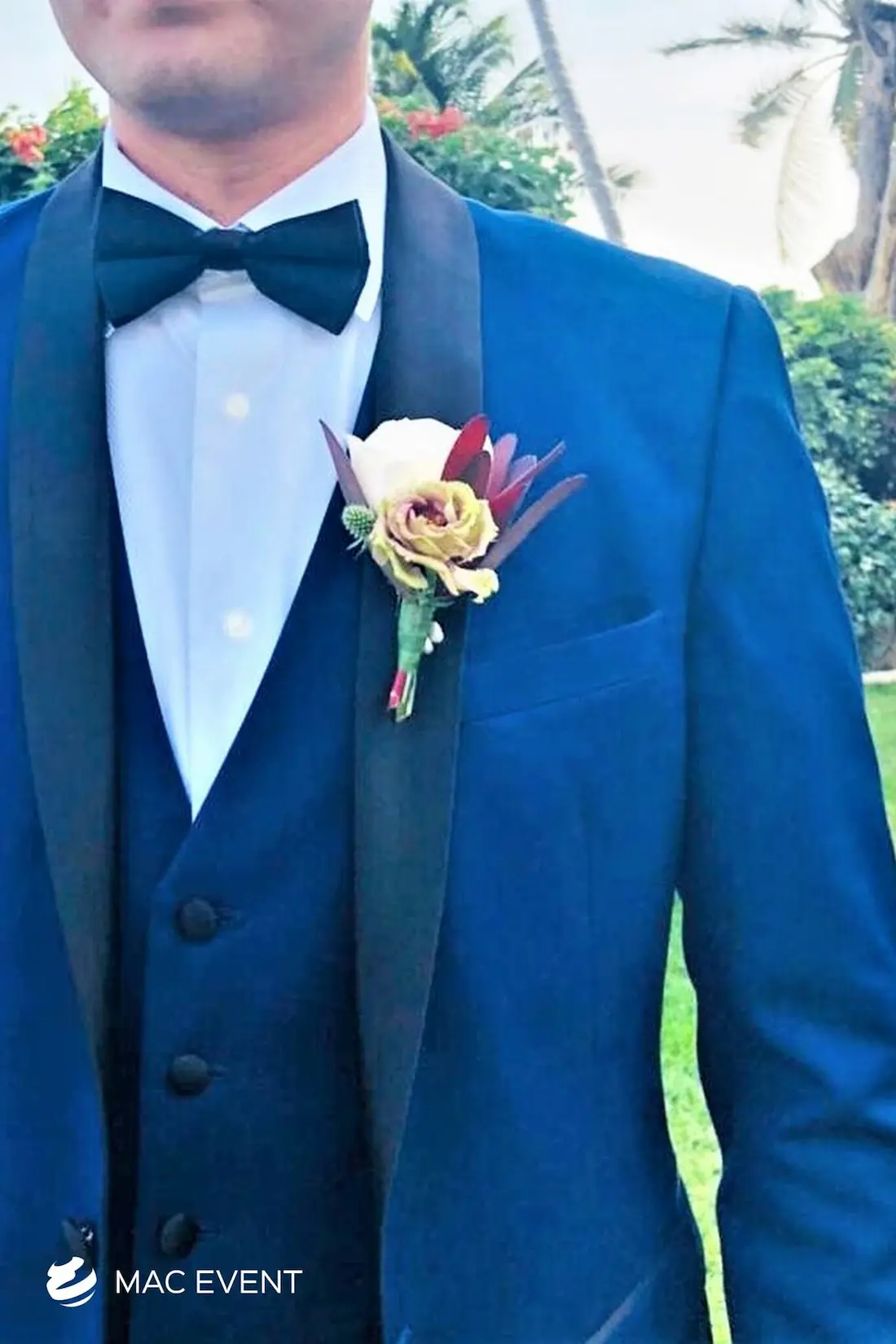 The boutonniere is a refined floral accent that adds elegance and personality to weddings and formal events in Manzanillo. Traditionally worn on the lapel, this small wedding floral accessory complements the bride’s bouquet and ties the overall design together. Crafted with fresh blooms or greenery, the boutonniere highlights the groom, groomsmen, and key family members with a coordinated touch of style. Ordering boutonnieres in Manzanillo ensures professional floral design and freshness that match your event’s color palette. For a classic and sophisticated detail, the boutonniere is a timeless finishing element.