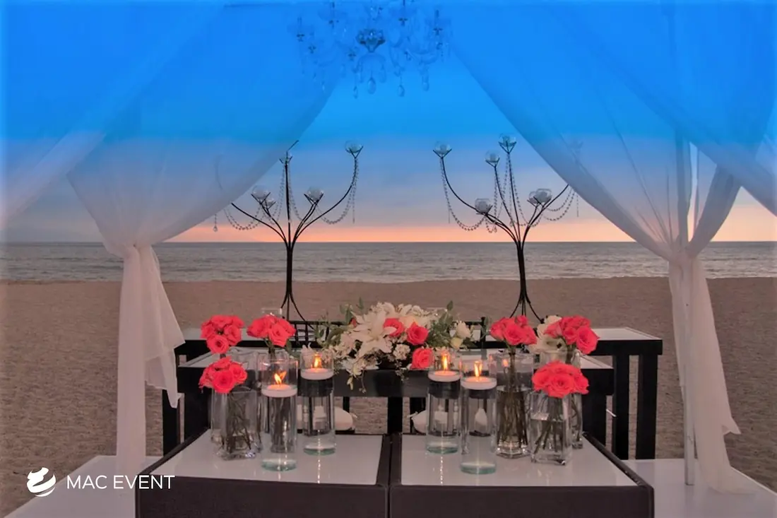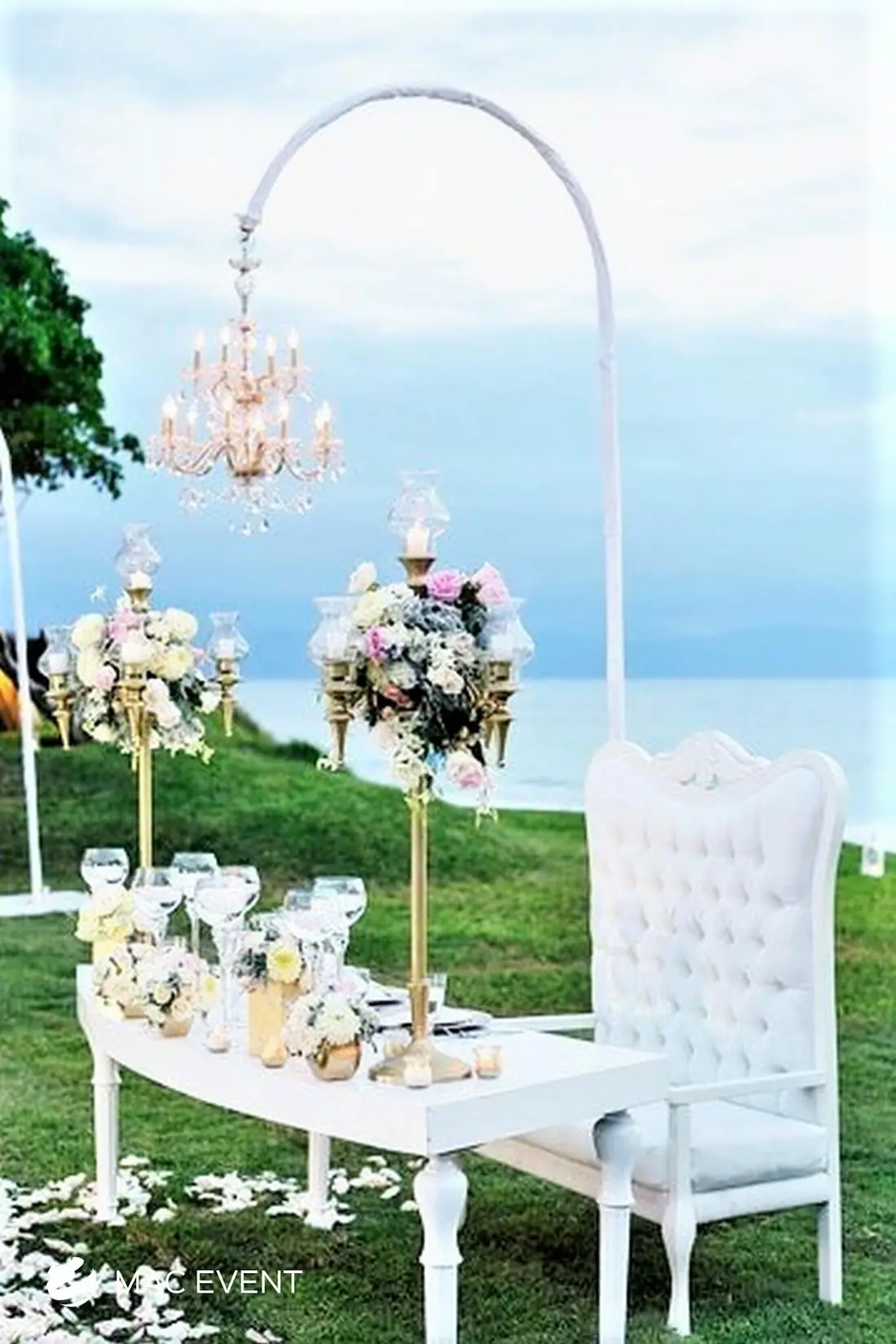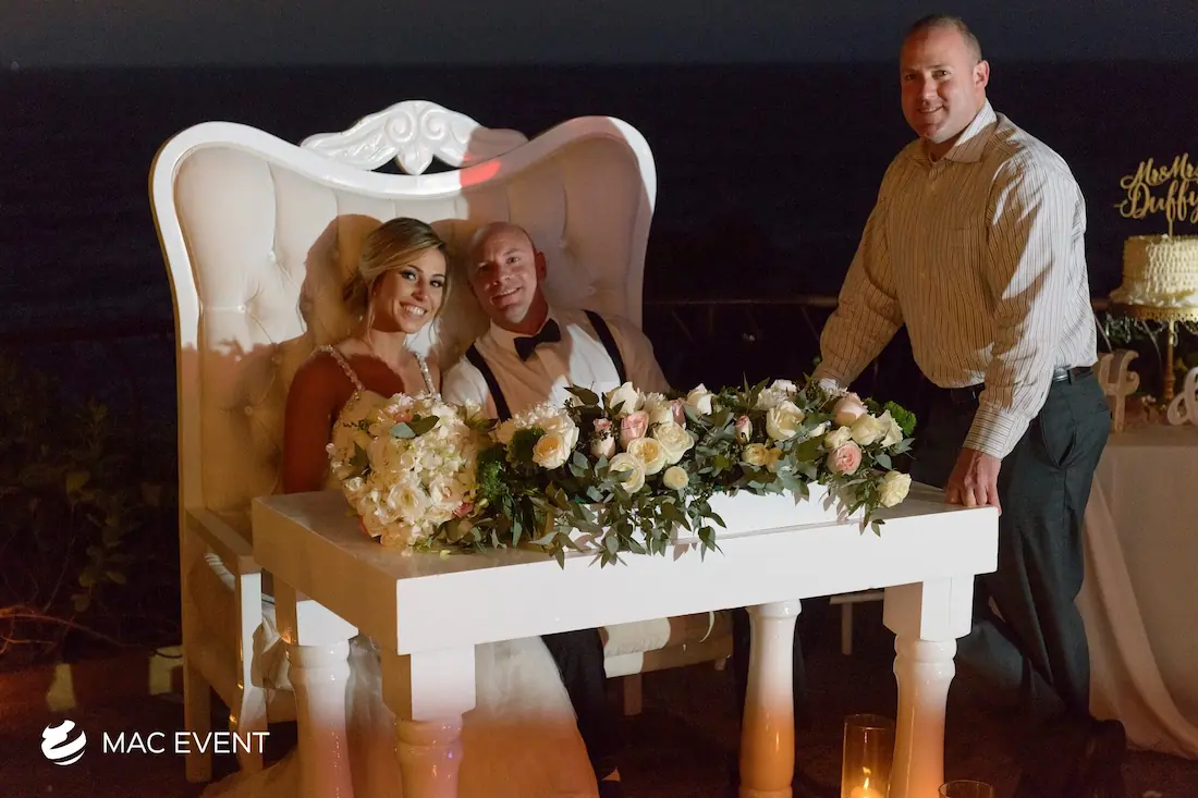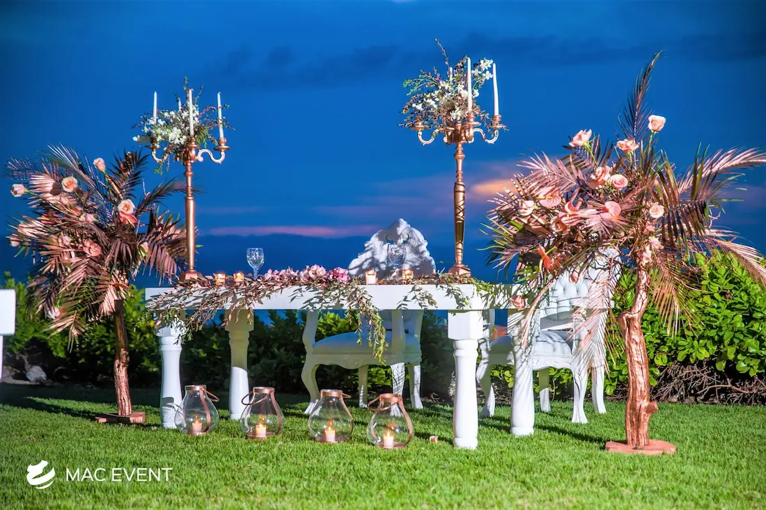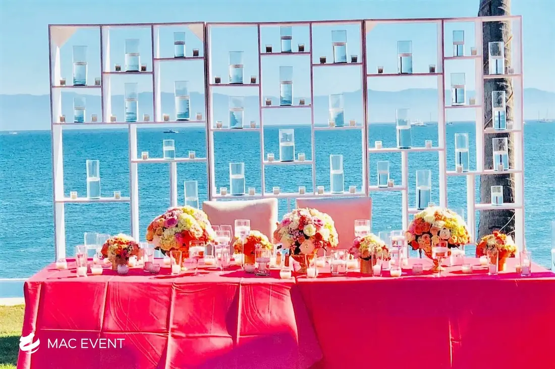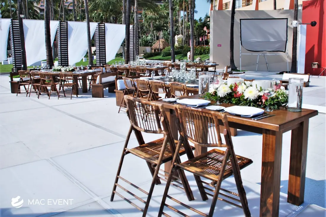 The sweetheart table is a romantic focal point at weddings in Manzanillo, designed exclusively for the newlyweds to share their first moments together as a married couple. This wedding table rental combines elegance and intimacy, often highlighted with floral arrangements, candles, and personalized décor that reflect the couple’s style. Positioned at the center of attention, the sweetheart table enhances both the ambiance and the visual flow of the reception. Renting sweetheart tables in Manzanillo ensures a beautifully coordinated setup that captures the essence of love and celebration. For an elegant and memorable touch, this table is a must-have feature for any wedding.