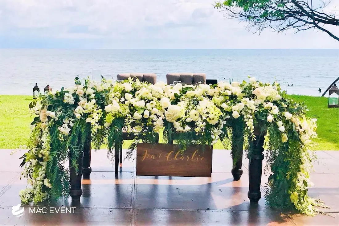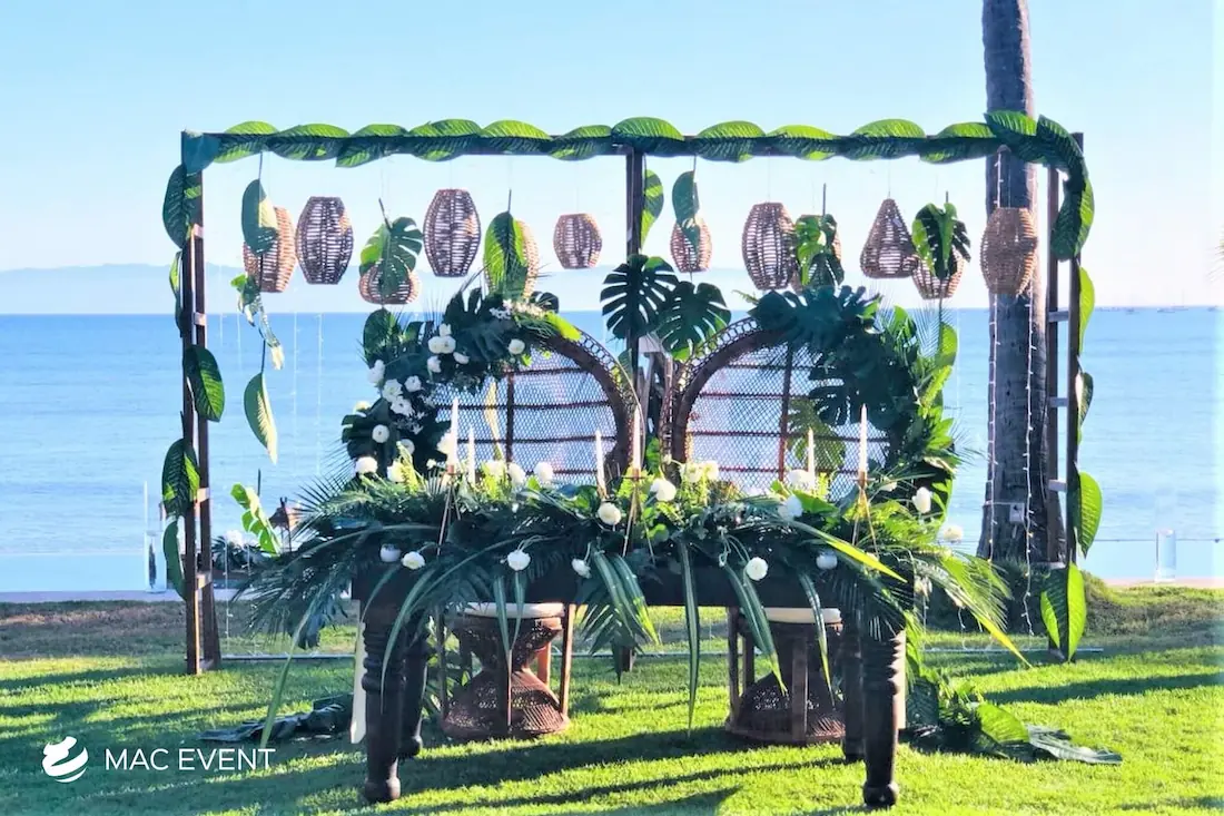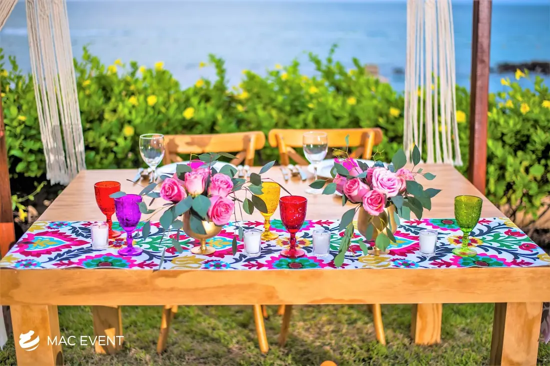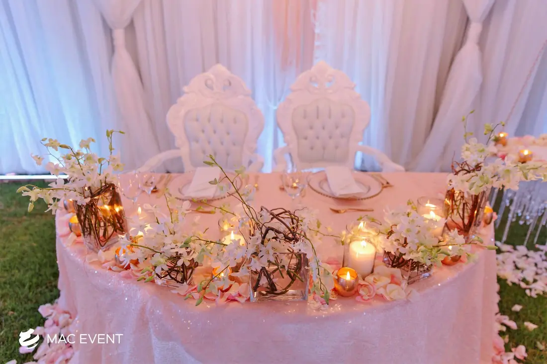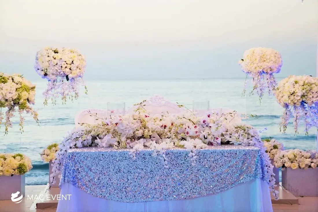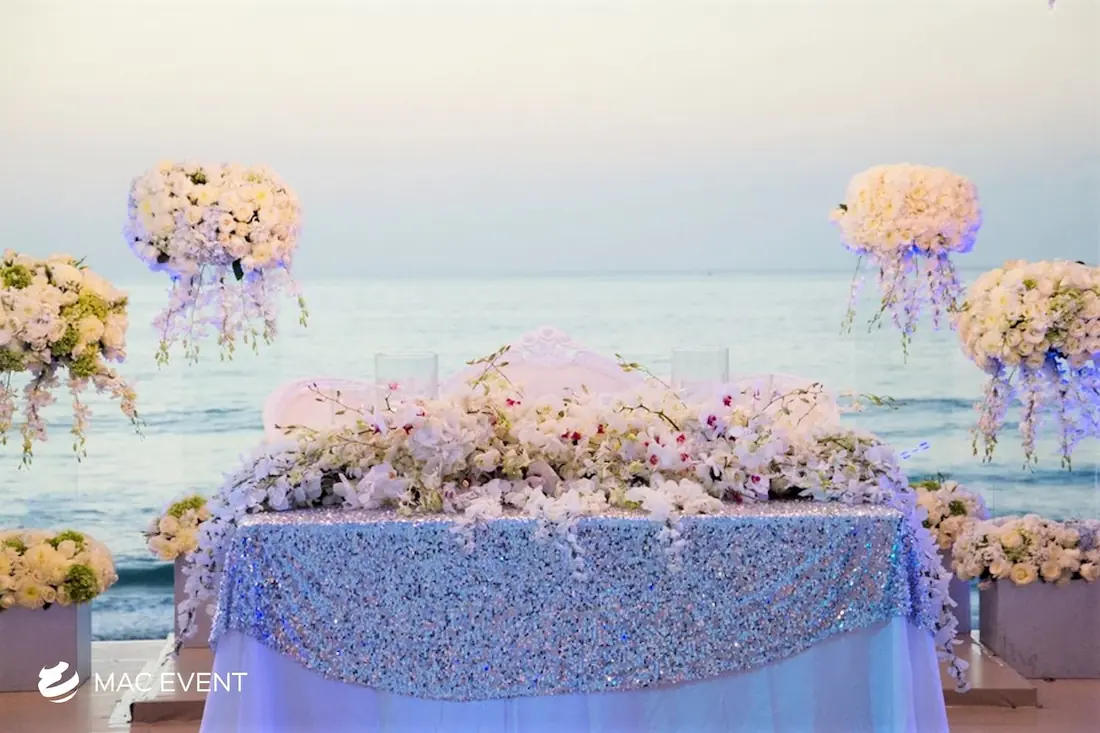 The sweetheart table is a romantic focal point at weddings in Manzanillo, designed exclusively for the newlyweds to share their first moments together as a married couple. This wedding table rental combines elegance and intimacy, often highlighted with floral arrangements, candles, and personalized décor that reflect the couple’s style. Positioned at the center of attention, the sweetheart table enhances both the ambiance and the visual flow of the reception. Renting sweetheart tables in Manzanillo ensures a beautifully coordinated setup that captures the essence of love and celebration. For an elegant and memorable touch, this table is a must-have feature for any wedding.