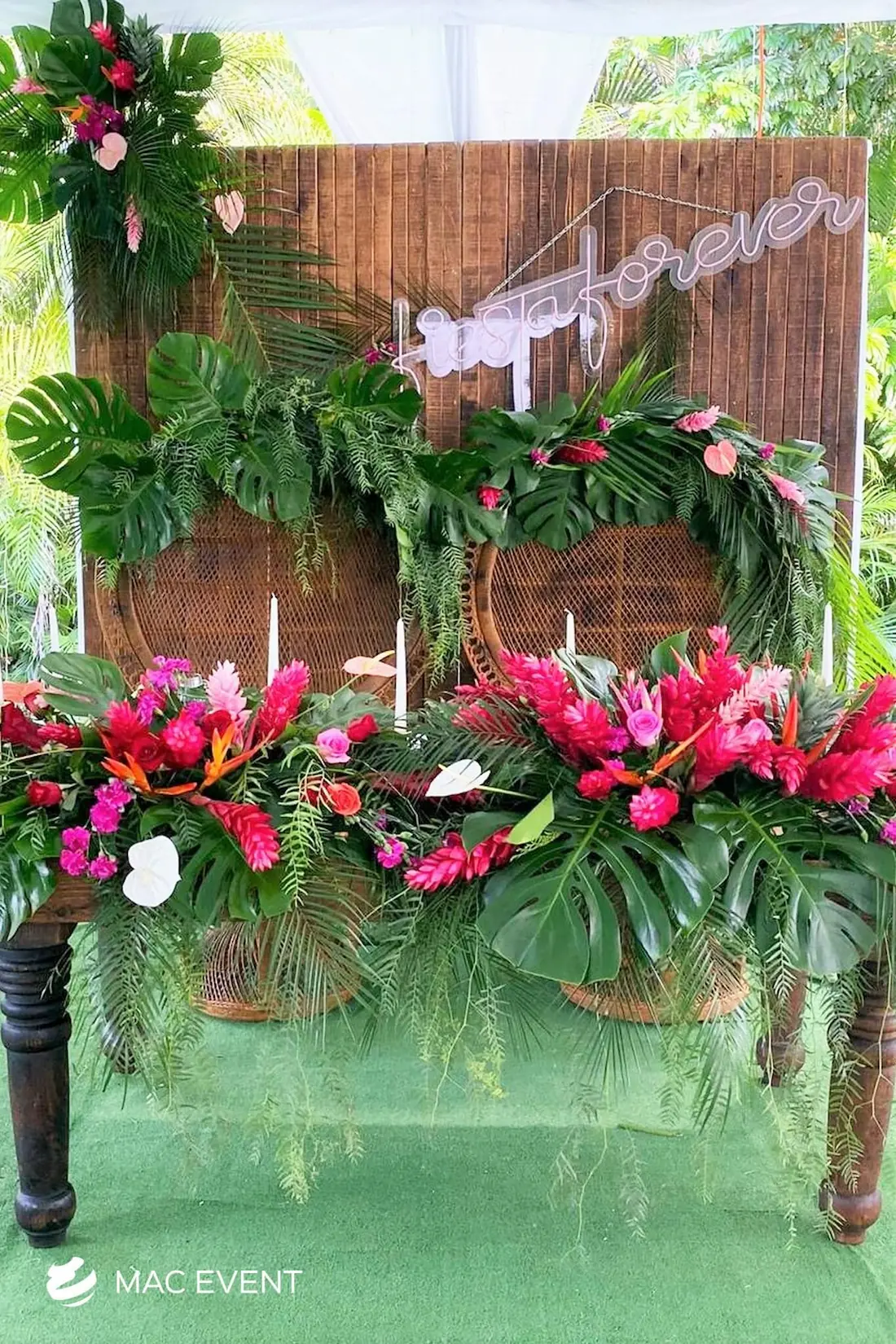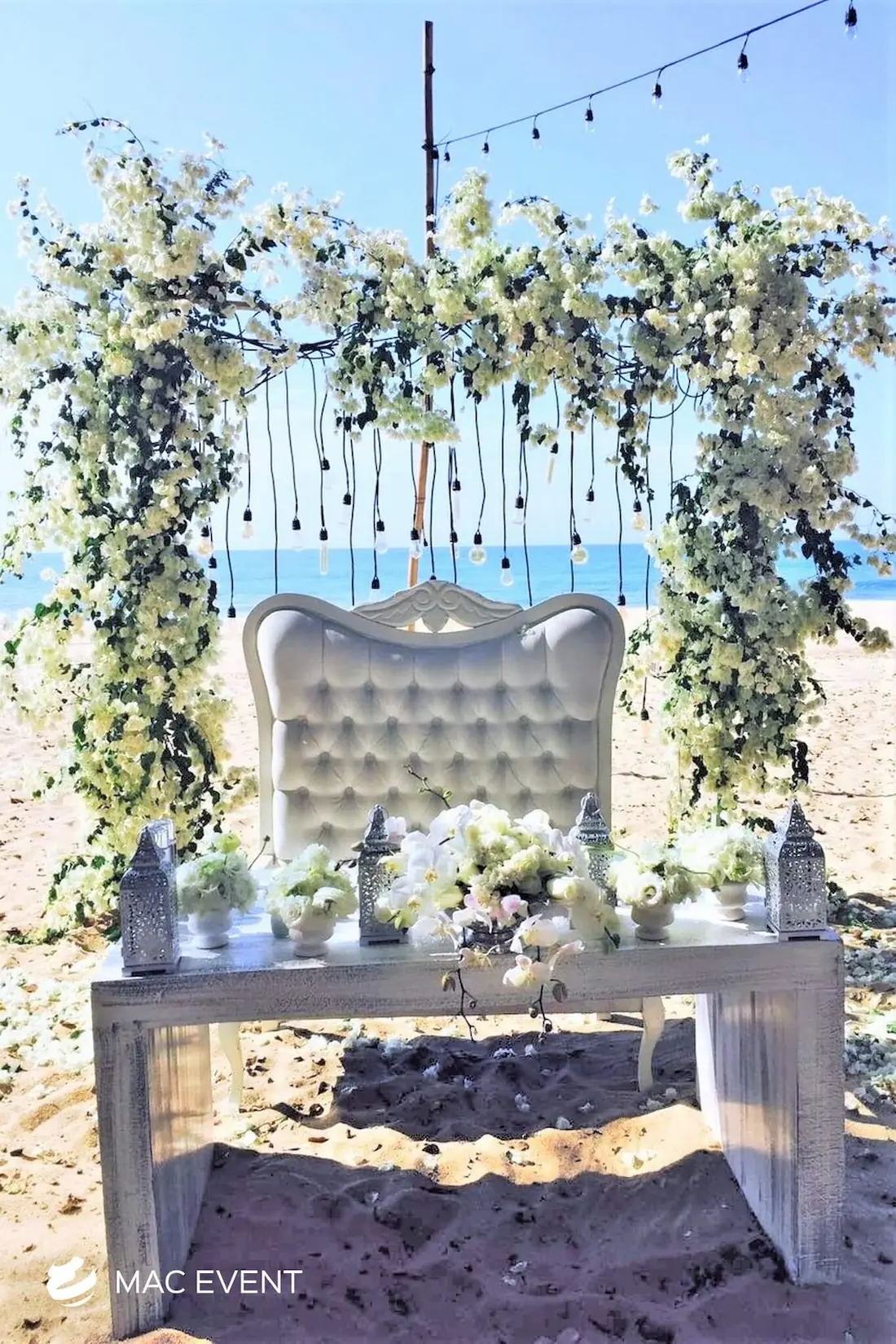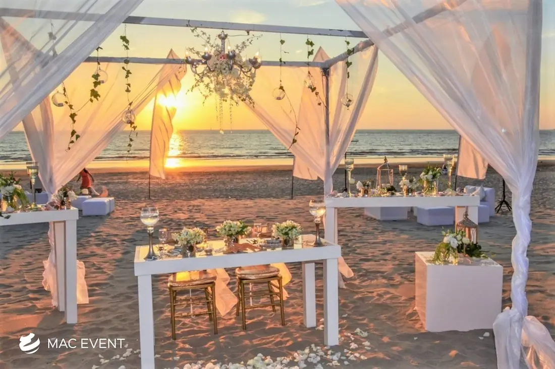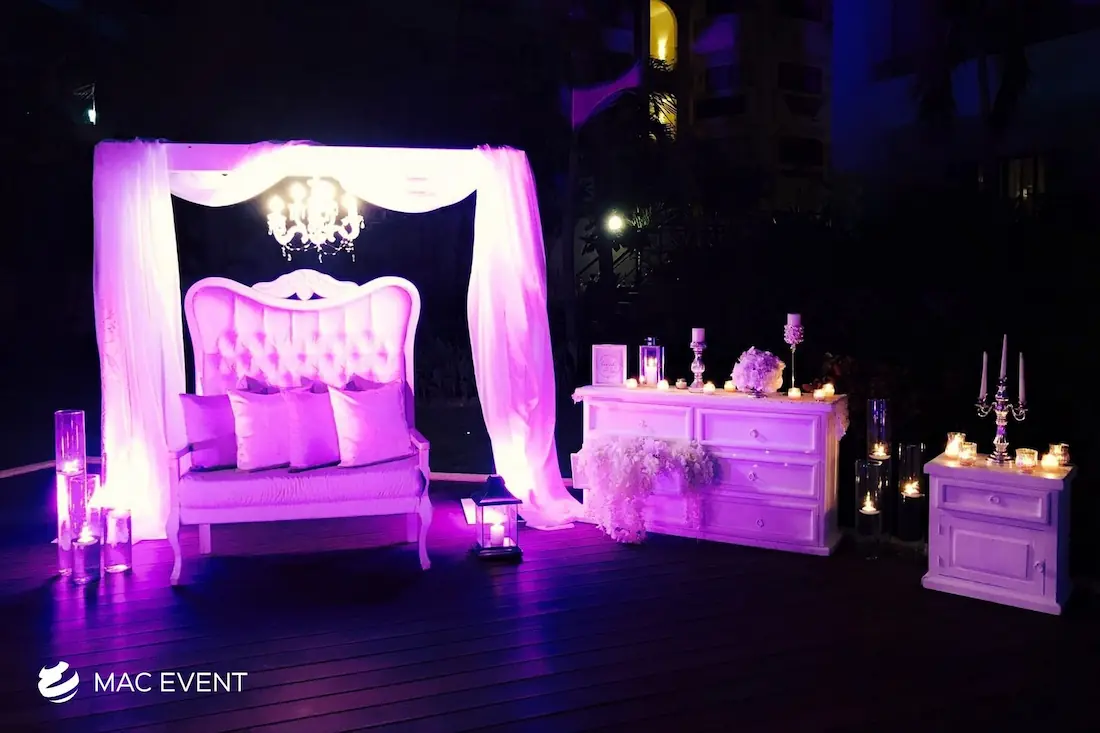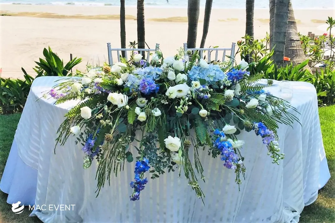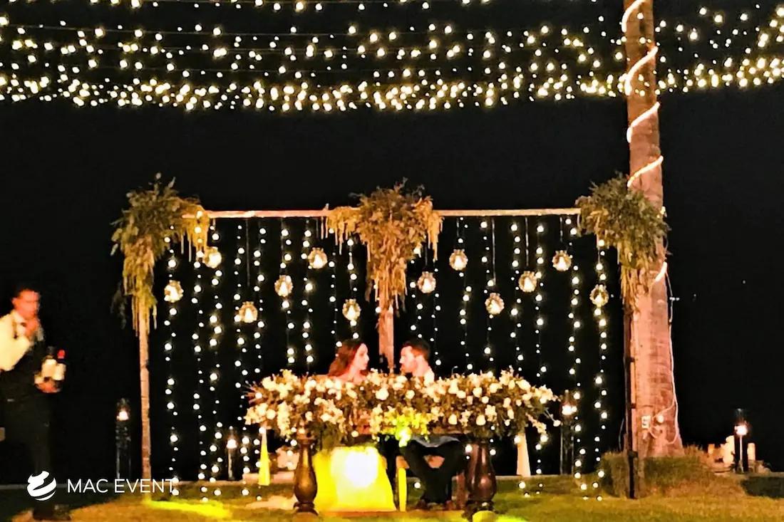The sweetheart table is a romantic focal point at weddings in Manzanillo, designed exclusively for the newlyweds to share their first moments together as a married couple. This wedding table rental combines elegance and intimacy, often highlighted with floral arrangements, candles, and personalized décor that reflect the couple’s style. Positioned at the center of attention, the sweetheart table enhances both the ambiance and the visual flow of the reception. Renting sweetheart tables in Manzanillo ensures a beautifully coordinated setup that captures the essence of love and celebration. For an elegant and memorable touch, this table is a must-have feature for any wedding.