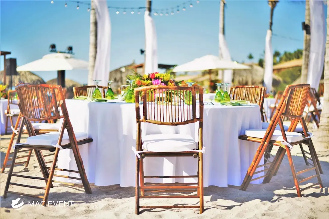 The bamboo chair is a perfect choice for tropical weddings, beach parties, and outdoor events in Manzanillo. Its natural texture and warm tone create a relaxed yet elegant atmosphere that blends beautifully with the local surroundings. Lightweight and eco-friendly, this bamboo chair rental is ideal for open-air ceremonies and casual gatherings where comfort and style matter equally. Renting bamboo chairs adds a touch of authenticity and charm to your event while ensuring a cohesive and inviting setup. For a tropical, sustainable, and refined look, the bamboo chair brings nature’s beauty into every celebration in Manzanillo.
