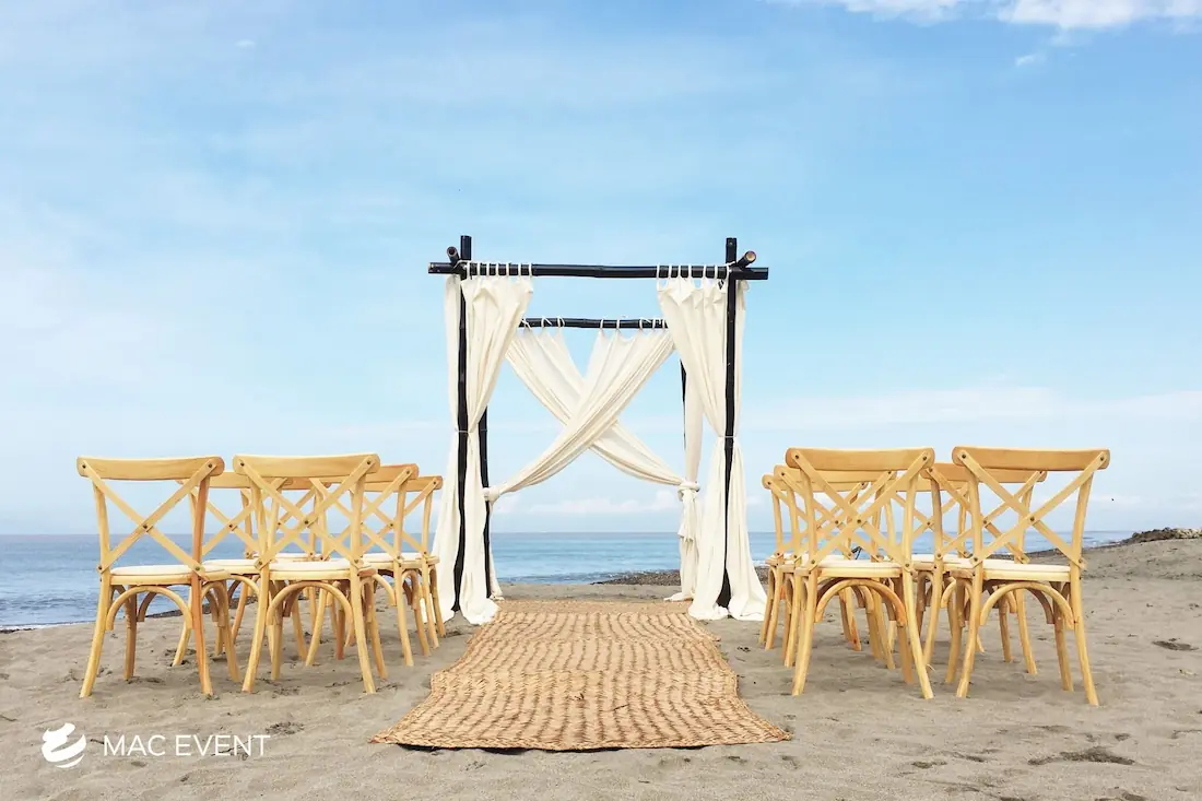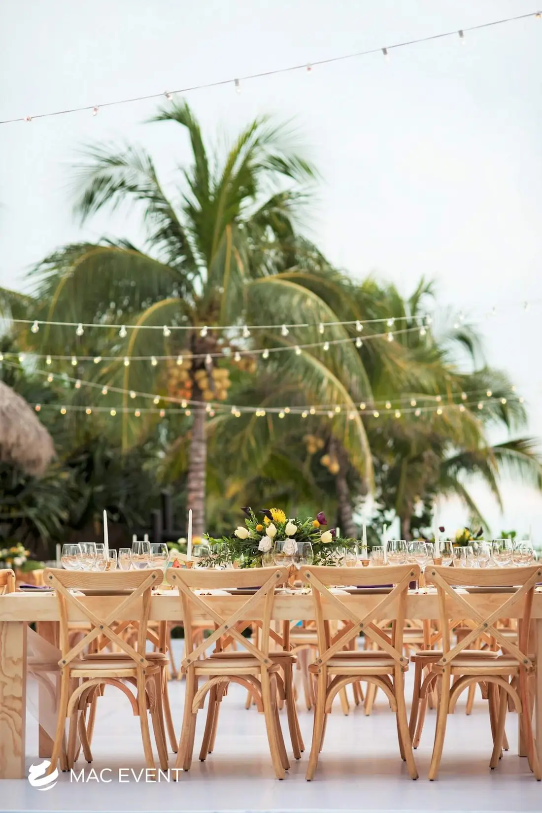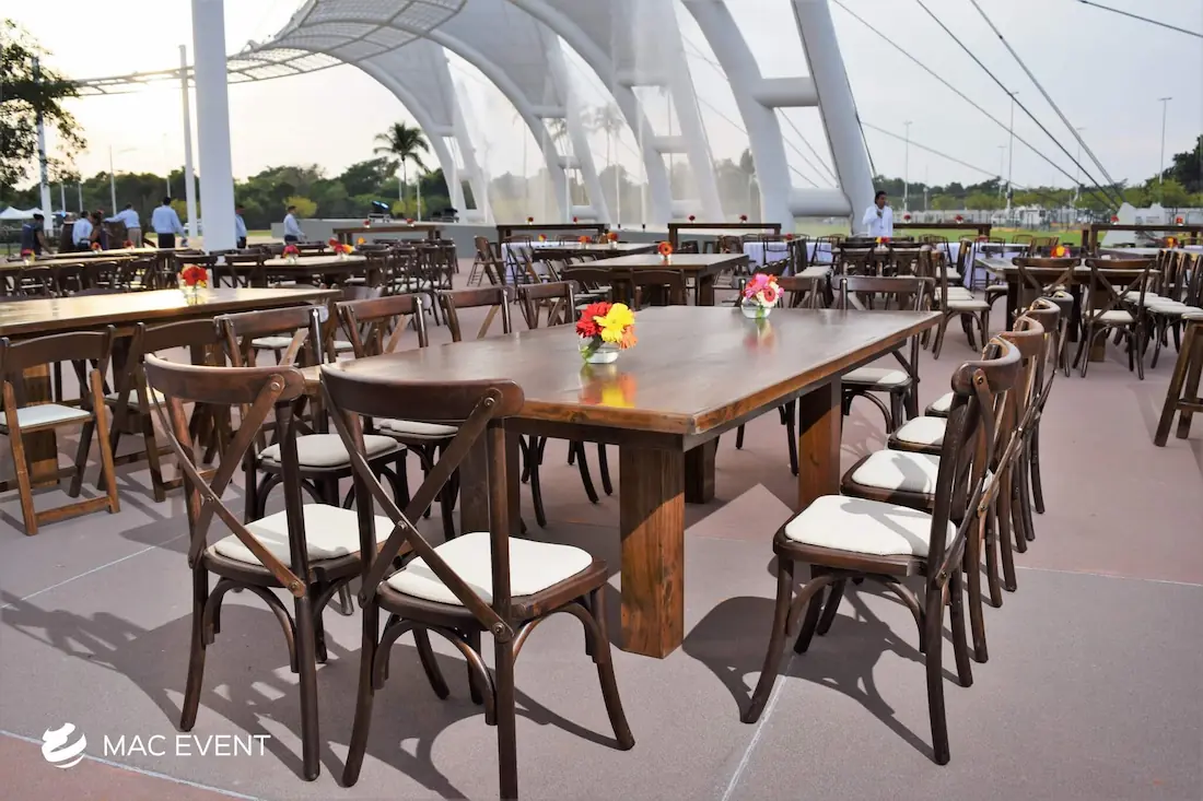 The cross back chair, also known as a x-back chair or farmhouse chair, is a timeless favorite for weddings, private parties, and elegant events in Manzanillo. Its rustic yet refined design blends perfectly with beach, garden, or boho-inspired settings, adding charm and character to any venue. Crafted from sturdy wood with a curved back for comfort, this cross back chair rental offers both beauty and practicality. Renting x-back chairs ensures a coordinated look that enhances your décor while keeping guests comfortable throughout the celebration. For a natural and sophisticated atmosphere, cross back chairs are the perfect choice for any event in Manzanillo.