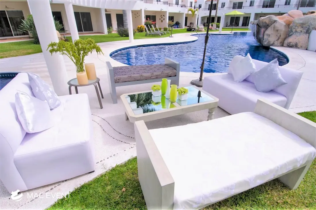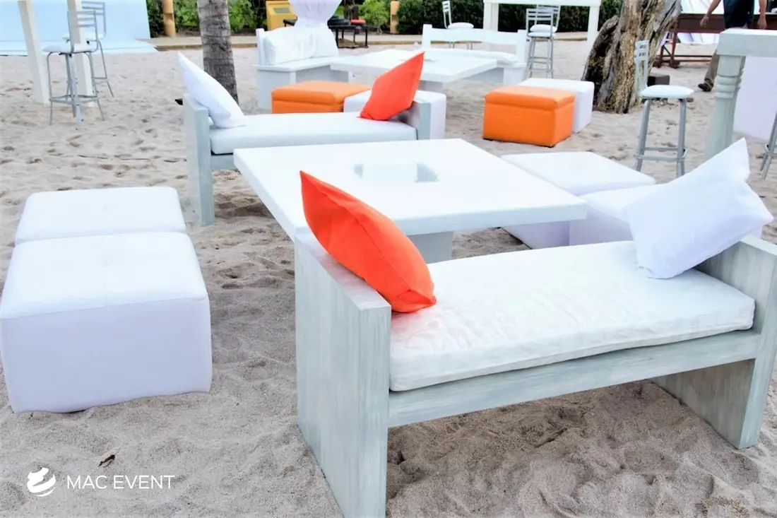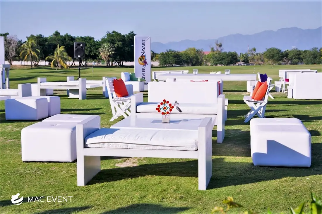 The modern lounge brings sleek style and contemporary comfort to weddings, parties, and corporate events in Manzanillo. With clean lines, neutral tones, and minimalist design, this event lounge rental creates a polished and sophisticated atmosphere. Perfect for cocktail areas, receptions, and networking spaces, the modern lounge offers a chic setting where guests can relax and socialize. Renting modern lounges in Manzanillo allows you to achieve a cohesive and elegant layout that complements any modern décor theme. For a stylish and comfortable experience, the modern lounge is an ideal choice for any event.
