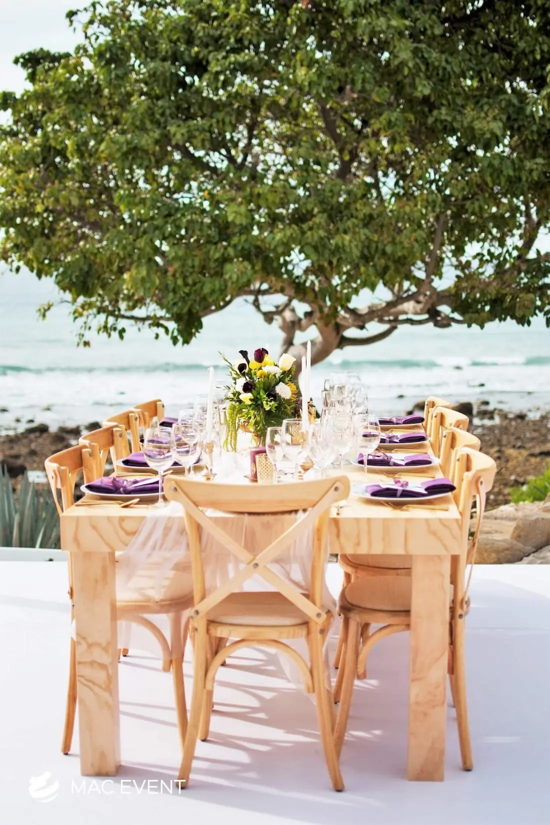 The natural table is an elegant and versatile choice for weddings, private parties, and corporate events in Manzanillo. With its organic wood finish and minimalist design, this event table rental creates a warm and inviting atmosphere that pairs perfectly with tropical, rustic, or boho décor. Ideal for dining setups, lounge areas, or outdoor receptions, the natural table offers both style and durability. Renting natural tables in Manzanillo allows you to achieve a cohesive, authentic look that enhances your event’s overall aesthetic. For effortless elegance and a connection to nature, this table is the perfect addition to any celebration.