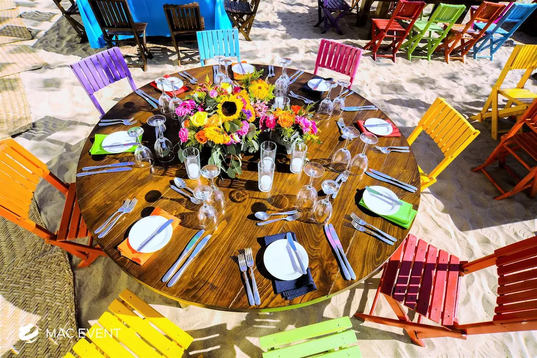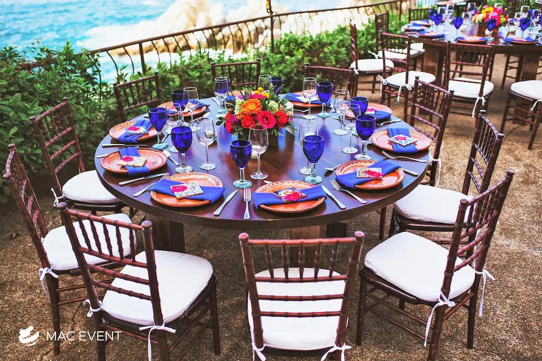 The round rustic table is perfect for weddings, outdoor parties, and elegant gatherings in Manzanillo. Its natural wood finish and handcrafted charm create a warm, inviting atmosphere that pairs beautifully with beach, garden, or boho-inspired themes. This event table rental combines style and durability, offering plenty of space for décor, dining, or floral arrangements. Renting round rustic tables in Manzanillo adds texture and authenticity to your setup while maintaining comfort and visual harmony. For those who want a touch of natural elegance, the round rustic table is an ideal choice to enhance any celebration.