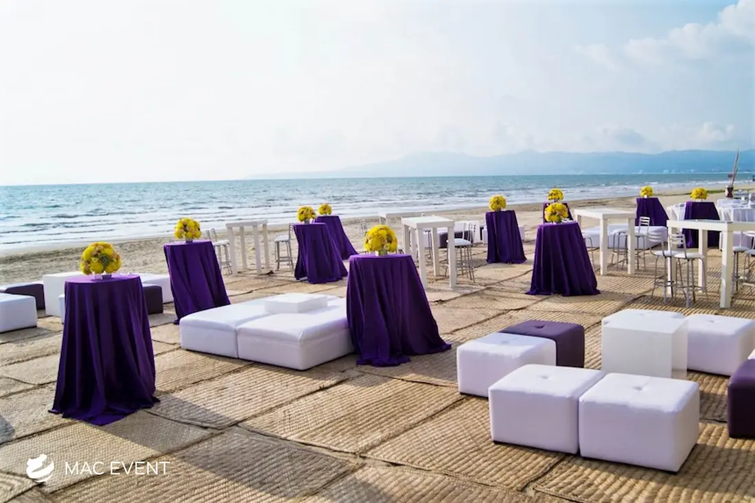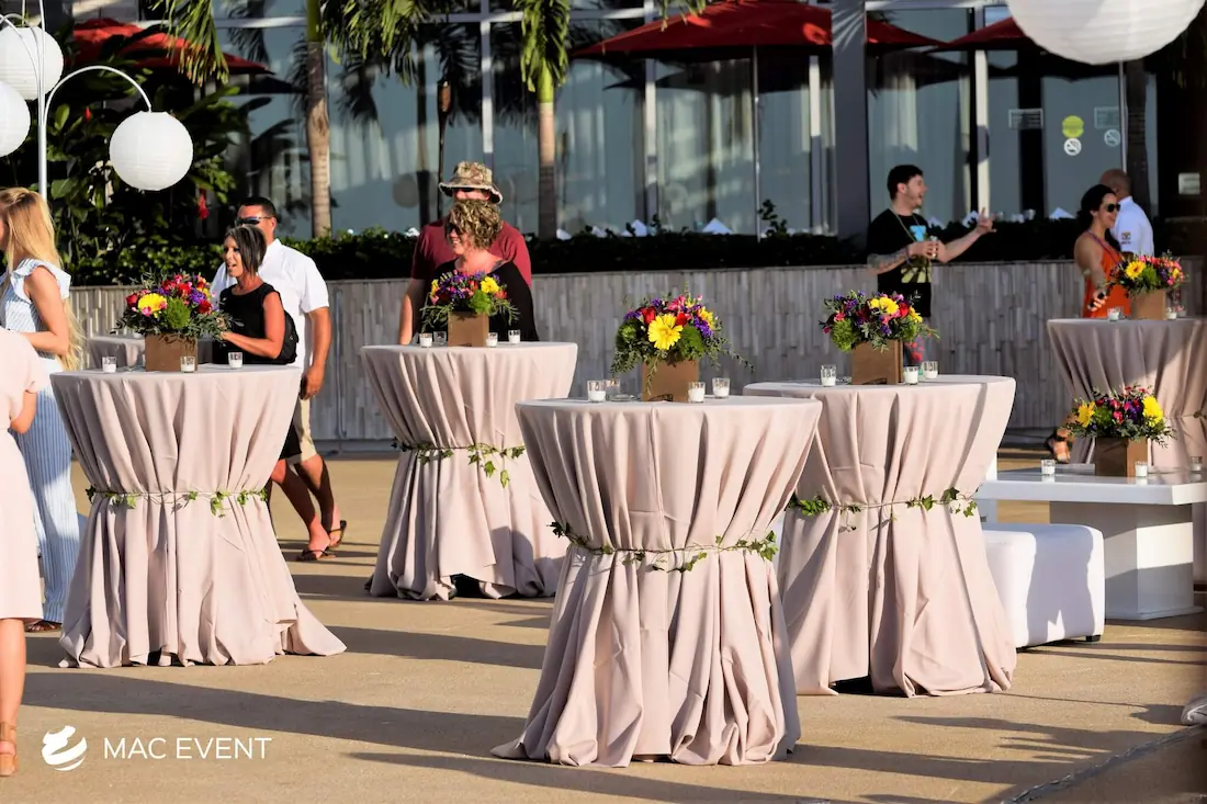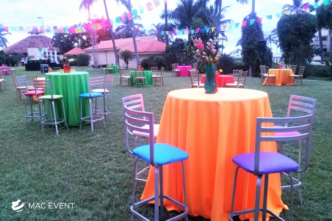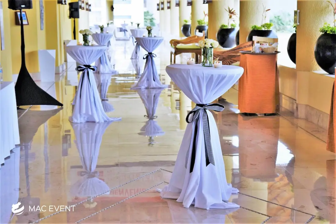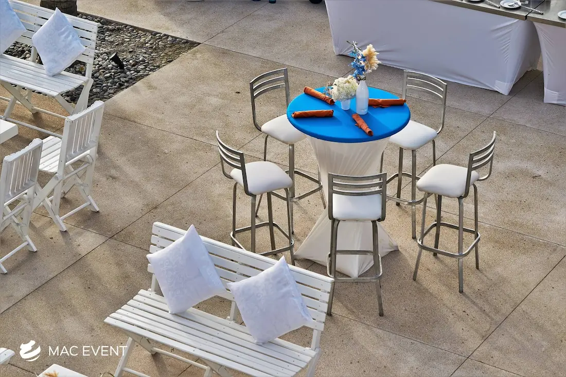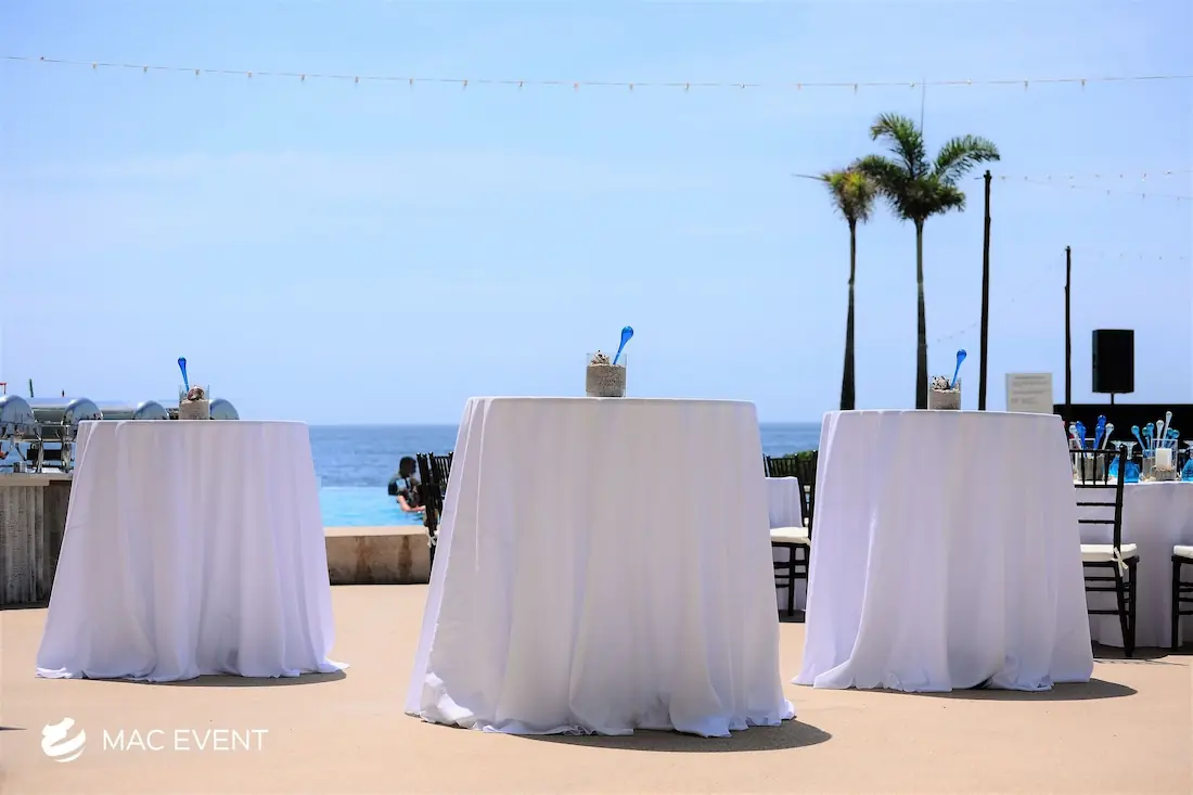 The classic cocktail table adds elegance and versatility to weddings, parties, and corporate events in Manzanillo. With its clean lines and timeless design, this event table rental fits beautifully in both indoor and outdoor spaces, creating the perfect area for guests to enjoy drinks and conversation. Ideal for cocktail hours, receptions, and networking events, the classic cocktail table offers a polished look that complements any décor style. Renting classic cocktail tables in Manzanillo ensures a cohesive and stylish setup that balances sophistication with practicality, making your event both inviting and memorable.