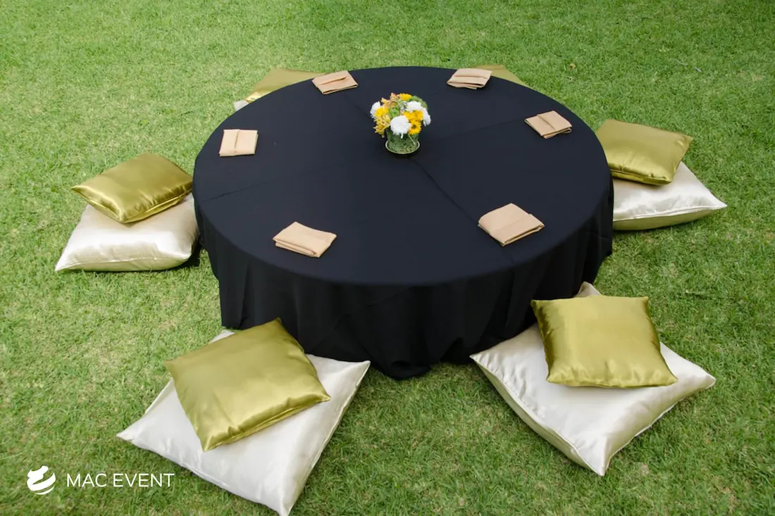 The round coffee table brings elegance and comfort to weddings, parties, and corporate events in Manzanillo. Its smooth circular design encourages conversation and creates a welcoming atmosphere in lounge or cocktail areas. This event table rental pairs beautifully with sofas, ottomans, and floor pillows, adding balance and flow to your décor. Renting round coffee tables in Manzanillo allows you to design cozy, stylish spaces where guests can relax and enjoy the celebration. For a refined yet relaxed touch, the round coffee table is the perfect addition to any event setup.
