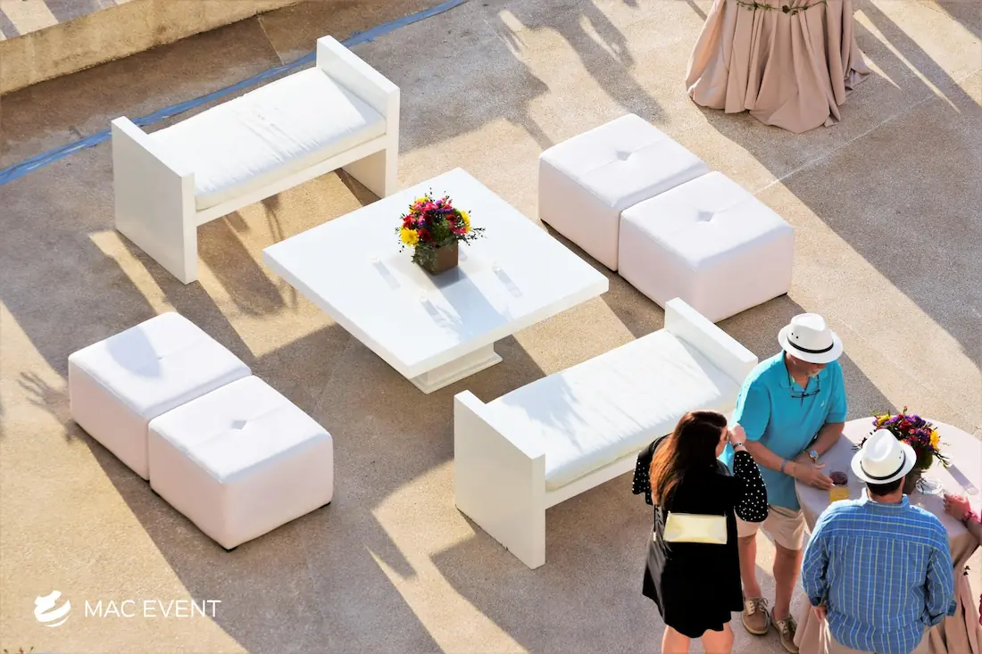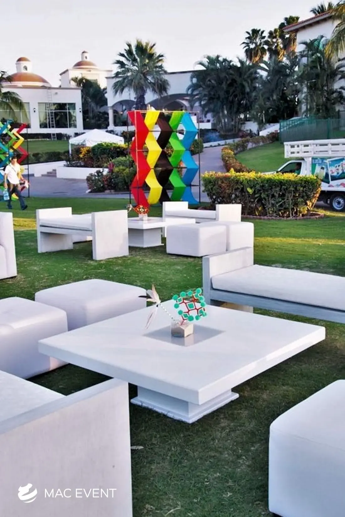 The wooden acrylic coffee table blends natural texture with modern transparency, making it a standout piece for weddings, parties, and corporate events in Manzanillo. Its wooden base adds warmth and character, while the clear acrylic top gives a sleek, contemporary finish that complements any décor style. This event table rental works beautifully in lounge areas, cocktail spaces, or outdoor receptions, offering both function and visual appeal. Renting wooden acrylic coffee tables in Manzanillo allows you to create elegant, inviting spaces where guests can relax in style. For a perfect mix of rustic charm and modern design, this table is an exceptional choice.