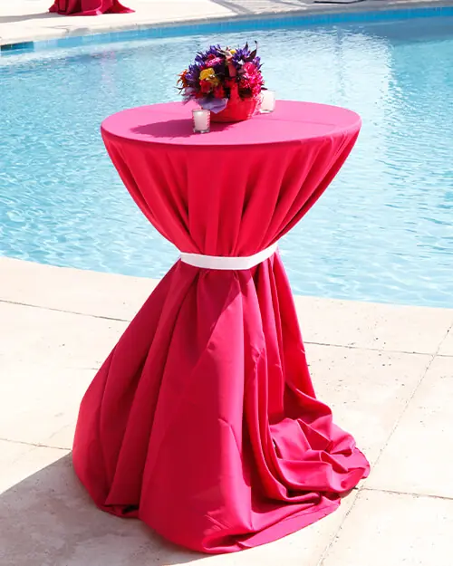 The long tablecloth brings elegance and harmony to weddings, parties, and corporate events in Manzanillo. Designed to drape gracefully to the floor, this event linen rental creates a clean and sophisticated look that enhances any table setup. Ideal for banquet tables, rectangular rustic tables, or family-style dining, long tablecloths add softness and balance to your décor. Renting long tablecloths in Manzanillo ensures consistency in color and quality while elevating the overall presentation of your event. For a refined and timeless finish, the long tablecloth is the perfect choice to complete your table design.
