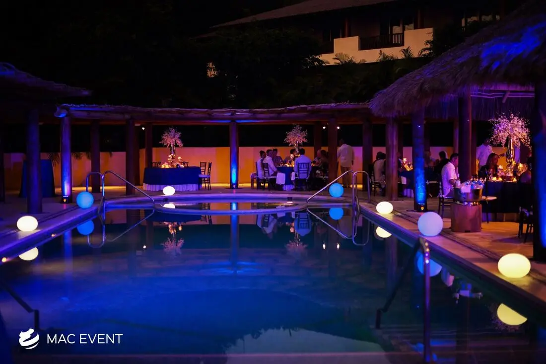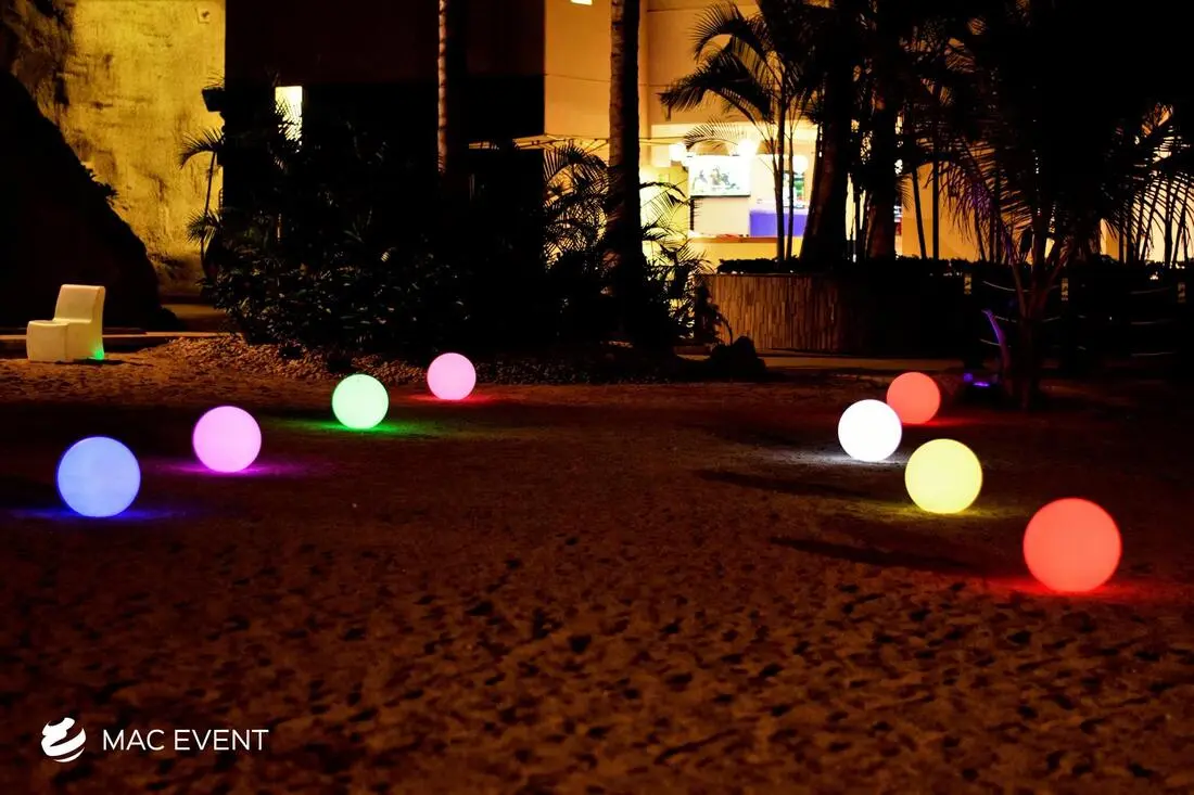 The orb lights add a modern and enchanting touch to weddings, parties, and corporate events in Manzanillo. With their spherical glow and elegant design, this event lighting rental creates a captivating atmosphere that enhances both indoor and outdoor spaces. Perfect for hanging above dining areas, floating in pools, or accenting garden setups, orb lights bring sophistication and creativity to your décor. Renting orb lights in Manzanillo ensures professional installation, high-quality lighting, and seamless integration with your event theme. For a stylish and magical ambiance that impresses guests, the orb lights are a perfect choice.