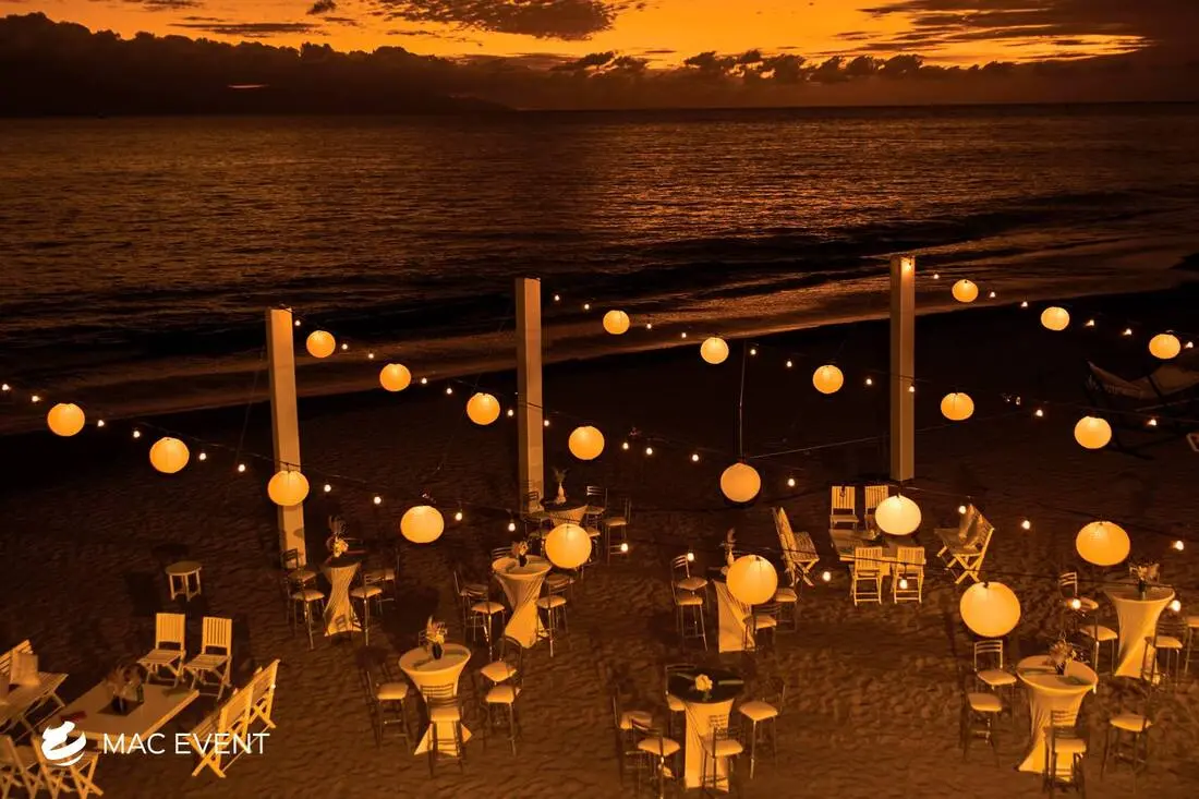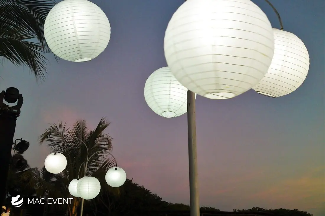 The paper lanterns add charm and a soft, romantic glow to weddings, parties, and corporate events in Manzanillo. Perfect for outdoor receptions, beach dinners, or garden celebrations, this event lighting rental creates a warm and inviting atmosphere. Available in various colors, sizes, and shapes, paper lanterns can be hung individually or in clusters to complement your décor. Renting paper lanterns in Manzanillo ensures professional installation and a cohesive look that enhances your theme. For an elegant and whimsical touch that transforms any space, the paper lanterns are a beautiful choice for any event.
