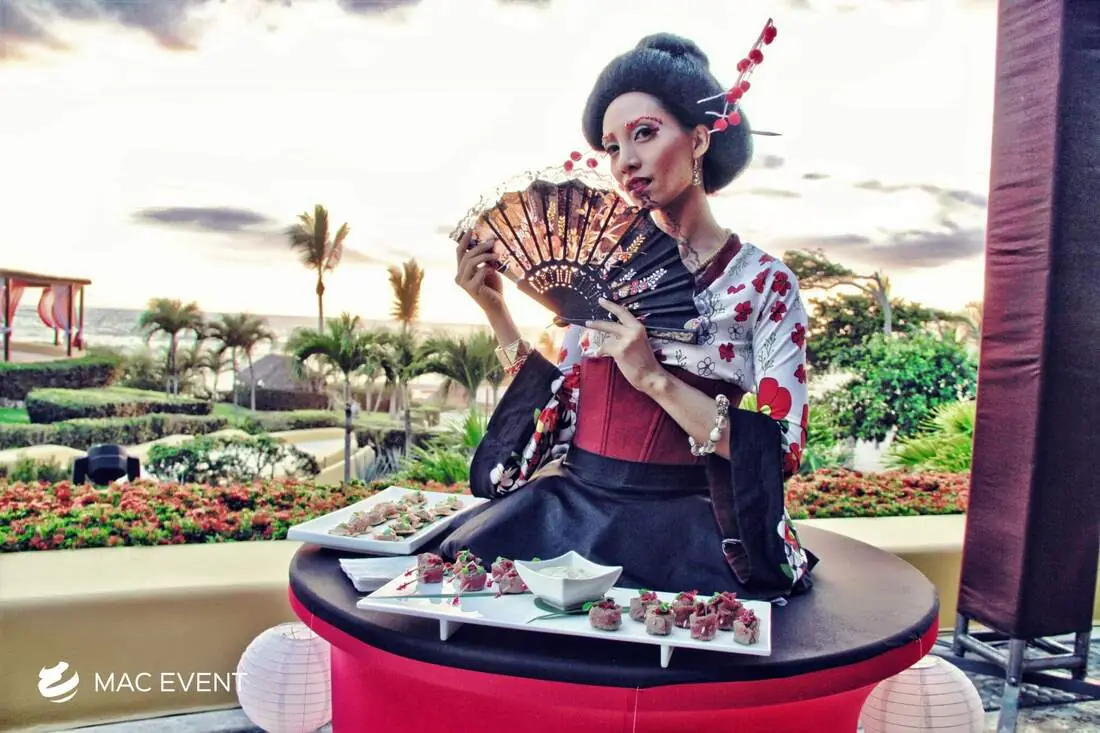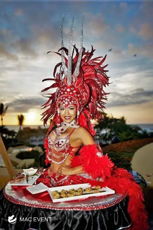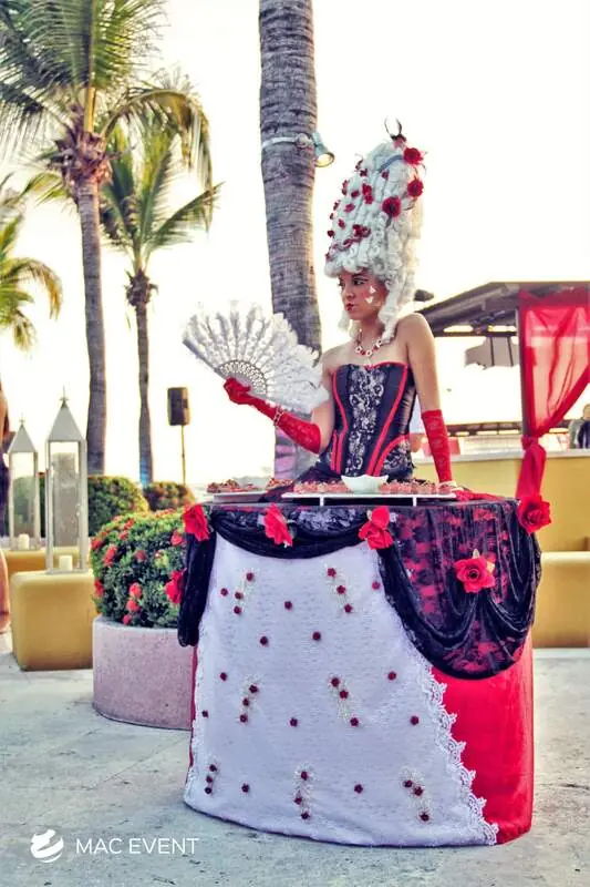 The strolling tables add creativity and elegance to weddings, parties, and corporate events in Manzanillo. Performed by entertainers wearing beautifully designed costumes with built-in tables, this event entertainment rental offers a unique way to serve drinks, appetizers, or favors. The strolling tables move gracefully among guests, combining functionality with visual impact and interactive charm. Renting strolling tables in Manzanillo ensures professional performers, stunning presentation, and seamless coordination with your event theme. For a stylish and unforgettable experience that delights guests, the strolling tables are a perfect addition to any celebration.