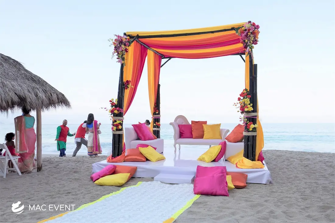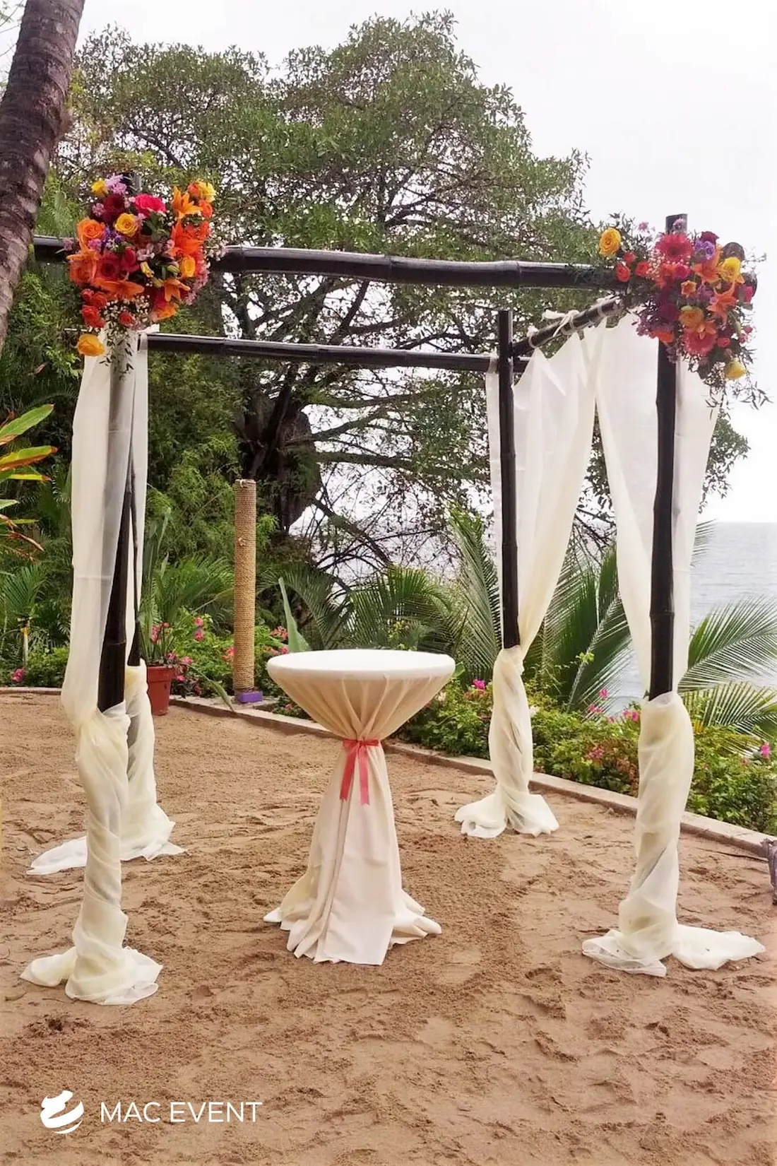 The wedding chuppah adds elegance and deep symbolism to ceremonies in Manzanillo. Representing love, unity, and the home a couple will build together, this wedding décor rental creates a beautiful and meaningful focal point. Perfect for beach, garden, or indoor settings, the chuppah can be styled with flowing fabrics, floral arrangements, or greenery to match your theme. Renting wedding chuppahs in Manzanillo ensures professional setup and a cohesive design that enhances your ceremony. For a romantic and spiritual touch that blends tradition with natural beauty, the wedding chuppah is a stunning choice.