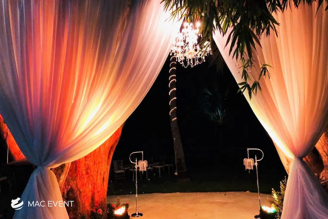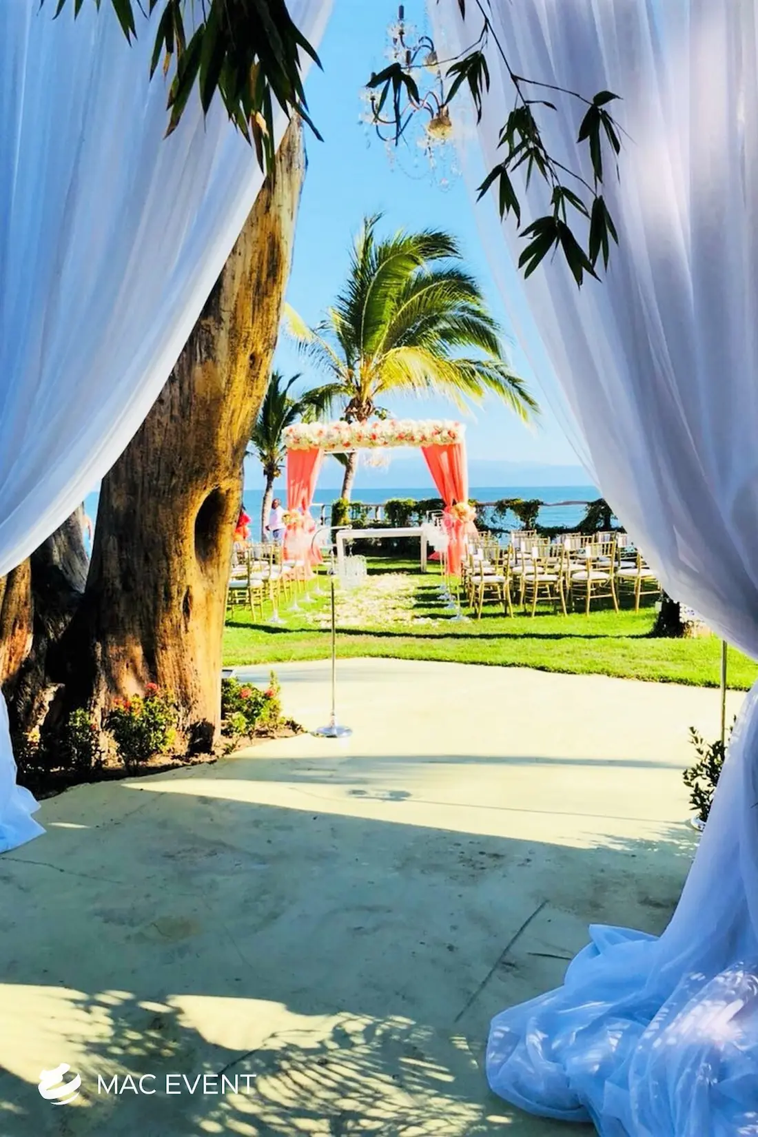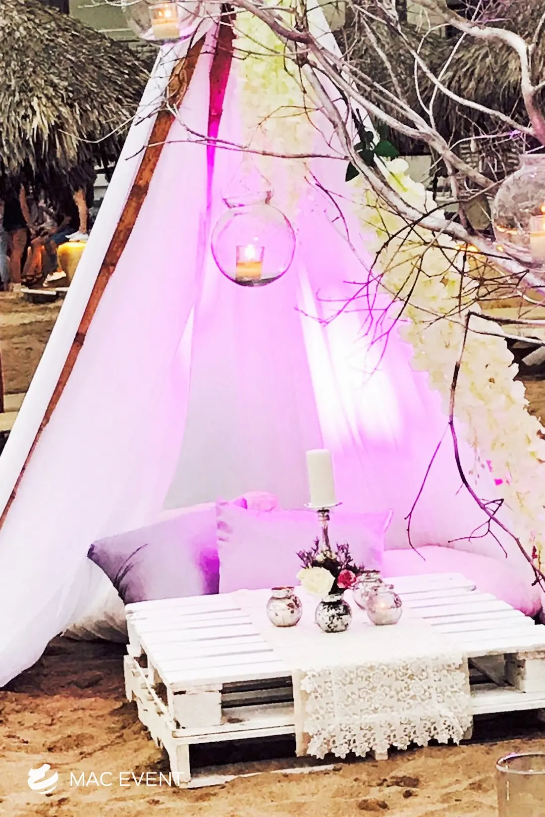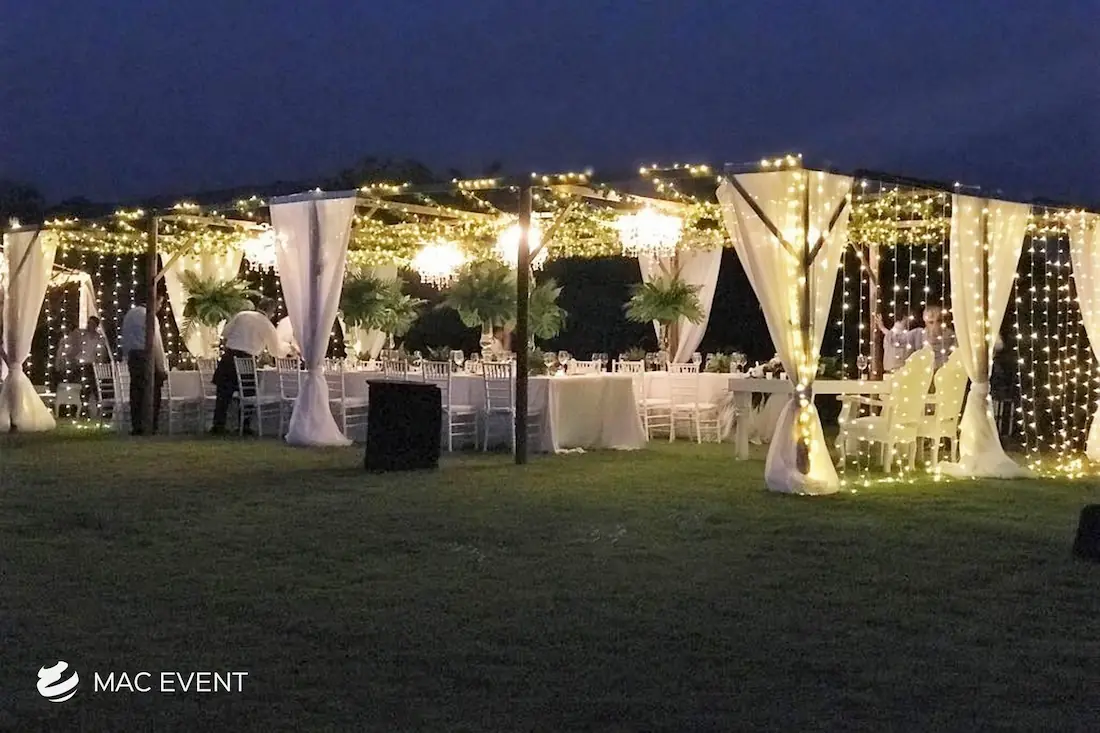 The tent draping adds elegance and softness to weddings, parties, and corporate events in Manzanillo. Designed to enhance any event tent rental, this decorative fabric transforms the structure into a luxurious and inviting space. Perfect for beach receptions, garden dinners, or formal celebrations, tent draping creates a refined atmosphere while complementing your color palette and theme. Renting tent draping in Manzanillo ensures professional installation and a cohesive, polished presentation. For a sophisticated and romantic touch that elevates your event décor, the tent draping is a beautiful addition to any setup.