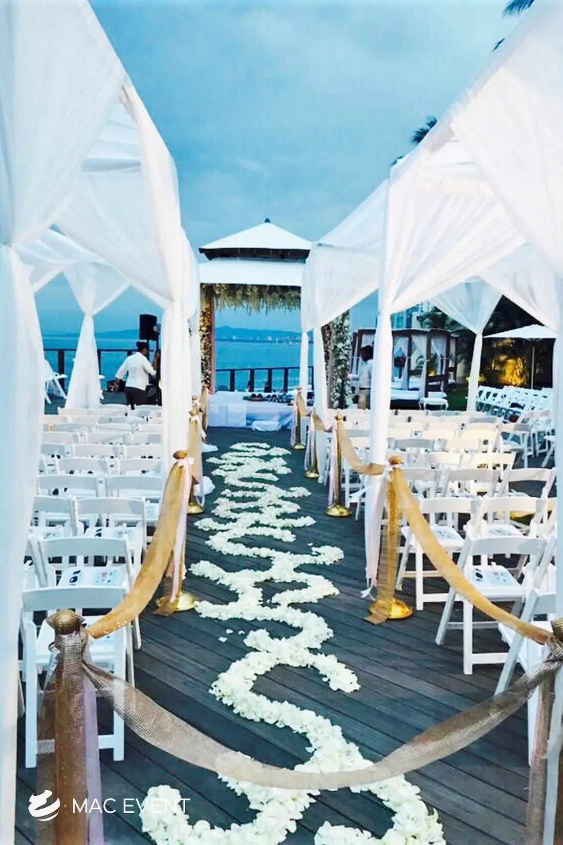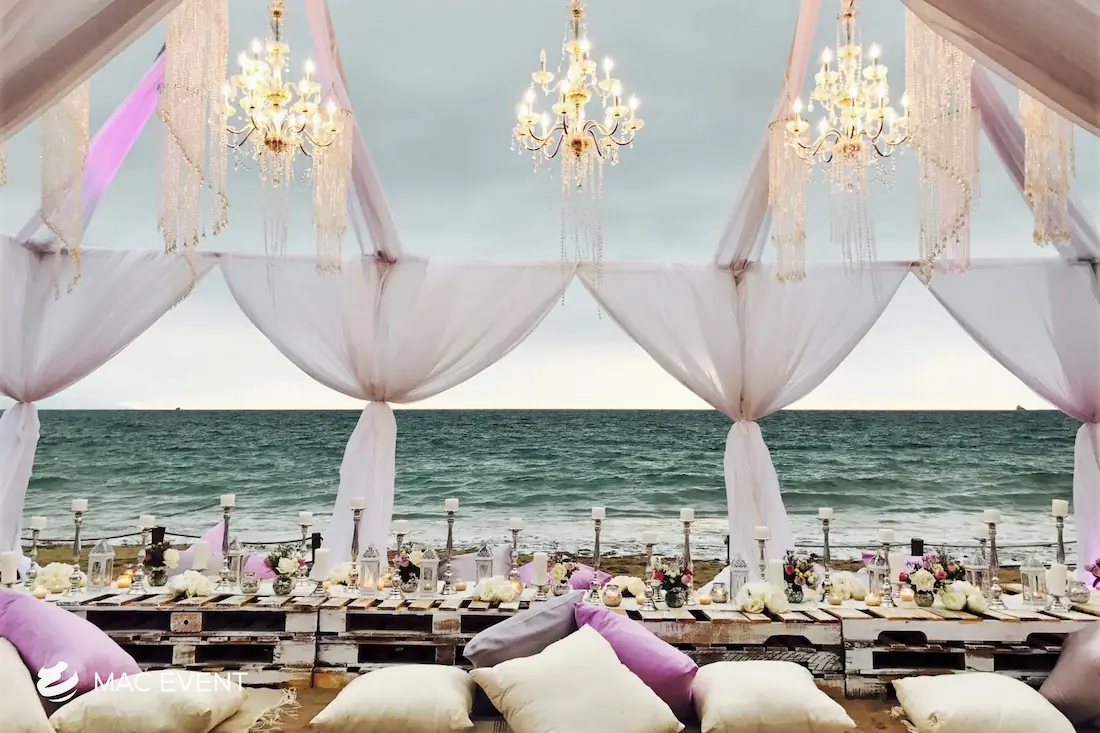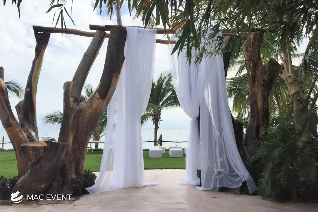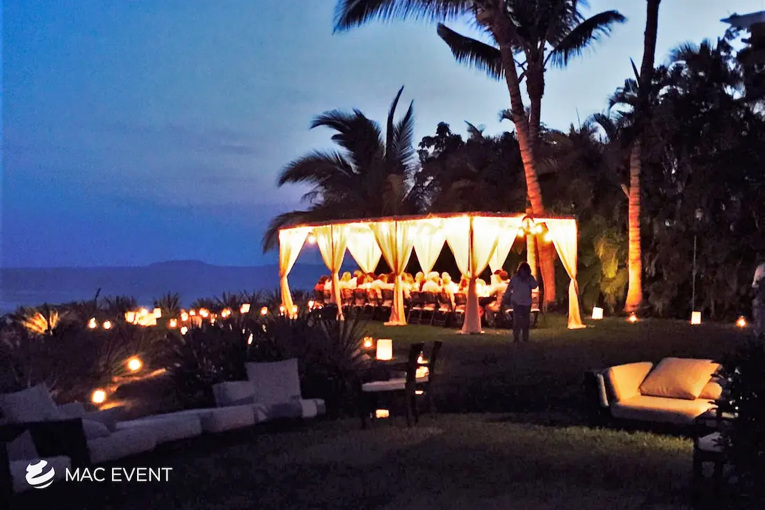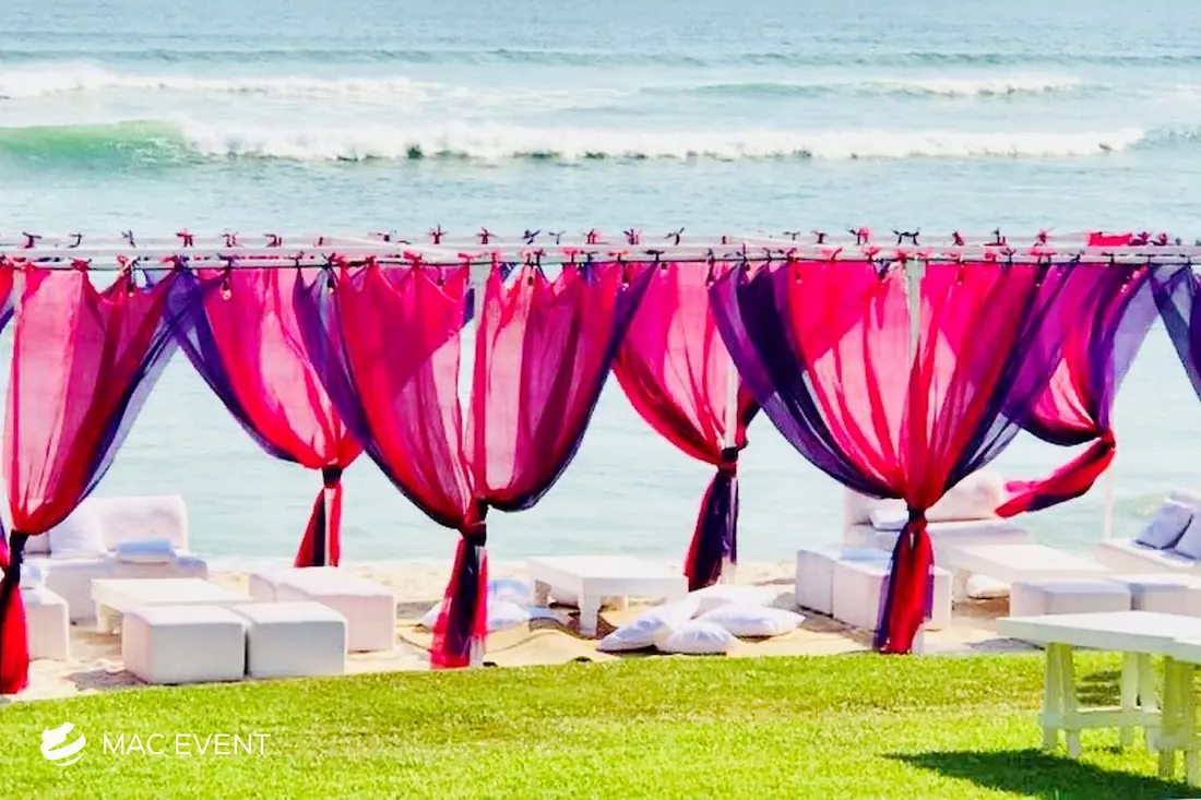 The tent draping adds elegance and softness to weddings, parties, and corporate events in Manzanillo. Designed to enhance any event tent rental, this decorative fabric transforms the structure into a luxurious and inviting space. Perfect for beach receptions, garden dinners, or formal celebrations, tent draping creates a refined atmosphere while complementing your color palette and theme. Renting tent draping in Manzanillo ensures professional installation and a cohesive, polished presentation. For a sophisticated and romantic touch that elevates your event décor, the tent draping is a beautiful addition to any setup.